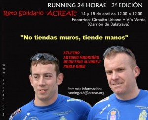 La Asociación de Ciudad Real de Enfermos de Artritis Reumatoide, Psoriásica y Juvenil (ACREAR), miembro de Somos Pacientes, celebró el pasado 14 de abril la segunda edición de su ‘Reto Solidario Running 24 Horas’, consistente en una carrera no competitiva de 24 horas en un circuito cerrado de dos kilómetros en Carrión de Calatrava para conseguir fondos dirigidos a costear el sueldo anual de un fisioterapeuta.