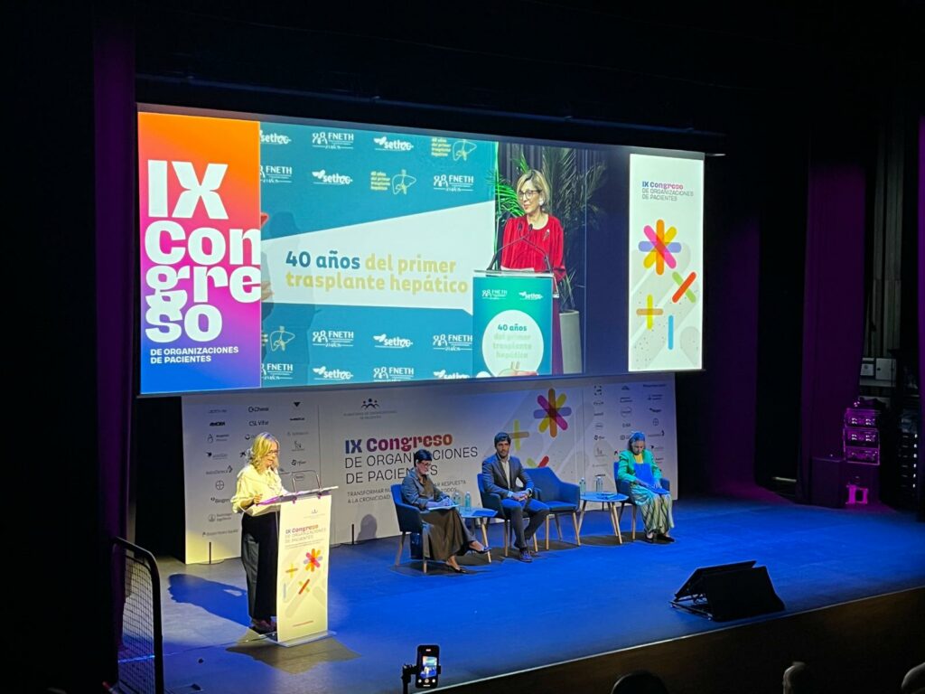 Finalmente, los organizadores del congreso dedicaron unos minutos del mismo a homenajear a la recientemente fallecida Eva Pérez Bech, presidenta de la Federación Nacional de Enfermos y Trasplantados Hepáticos (FNETH). Su figura fue recordada con afecto y admiración por su dedicación incansable a mejorar la vida de las personas con enfermedades hepáticas, así como a impulsar el asociacionismo en multitud de entornos relacionados con la cronicidad.