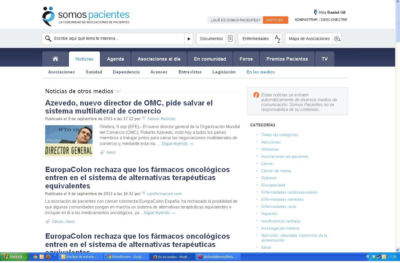 Somos Pacientes está de estreno. En su propósito de ofrecer cada vez un mejor servicio a pacientes, a familiares y a las asociaciones que les representan, así como a profesionales sanitarios y público en general, nuestra sección de Noticias ofrece desde hoy una nueva oferta llamada En los medios.