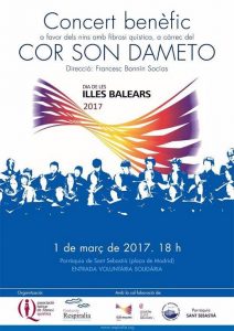 La Asociación Balear de Fibrosis Quística y su Fundación Respiralia contra la Fibrosis Quística, miembro de Somos Pacientes, organizarán el próximo miércoles, 1 de marzo, en Palma de Mallorca (Islas Baleares) y en el marco de la celebración del Día de las Islas Baleares, un concierto benéfico del Coro de la Asociación de Vecinos de Son Dameto a favor de los niños y adolescentes con fibrosis quística.