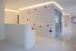El Centro surge de una apuesta radical y resuelve las necesidades funcionales, eliminando todos aquellos elementos que son identificados como hospitalarios. Para ello, indica Fundación Aladina, «se introduce el uso de nuevos materiales como el ‘Himacs’, que permite redondear las esquinas y evitar los protectores de golpes, el diseño de cabeceros que minimicen la presencia de los aparatos y acabados que por medio del color y la geometría conformen una percepción lúdica del espacio».