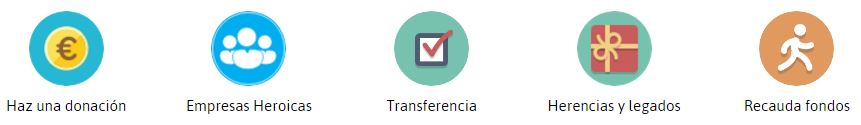 Además de estos tres papeles, existe la posibilidad de colaborar a través de otras vías: ‘Haz una donación’. ‘Empresas heroicas’, ‘Transferencia’, ‘Herencias y legados’ y ‘Recauda fondos’.
