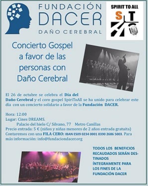 La Fundación DACER, miembro de Somos Pacientes, organiza a las 12:00 horas de este domingo en los cines Dreams del Palacio del Hielo de Madrid –c/ Silvano, 77– el concierto solidario del coro góspel ‘SpiriToAll’ a favor de las personas con DCA. El precio de la entrada es de tan solo 5 euros.