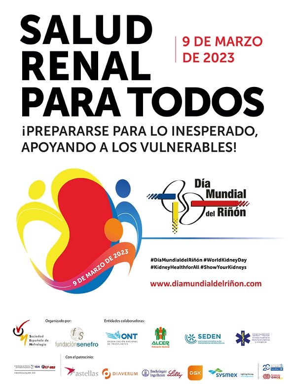 Bajo el lema ‘Salud renal para todos. ¡Prepararse para lo inesperado, apoyando a los vulnerables!’, hoy jueves, 9 de marzo, se conmemora el Día Mundial del Riñón, una efeméride impulsada desde 2006 por la Sociedad Internacional de Nefrología (ISN) y la Federación Internacional de Fundaciones Renales-Alianza Renal Mundial (IFKF-WKA) para informar a la sociedad sobre la importancia de salvaguardar la salud renal y reducir el impacto de estas enfermedades y de sus complicaciones.