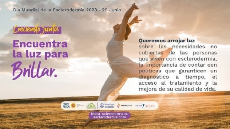 Bajo el lema ‘Encuentra la Luz para Brillar. Creciendo Juntos’, hoy jueves, 29 de junio, se celebra el Día Mundial de la Esclerodermia, una efeméride instituida e impulsada desde el año 2009 por la Federación Europea de Asociaciones de Esclerodermia (FESCA) con el objetivo de informar a la sociedad sobre esta enfermedad rara que afecta a 300 personas por cada millón de habitantes, muy especialmente mujeres con edades comprendidas entre los 30 y los 50 años –constituyen el 75% del total de los casos.