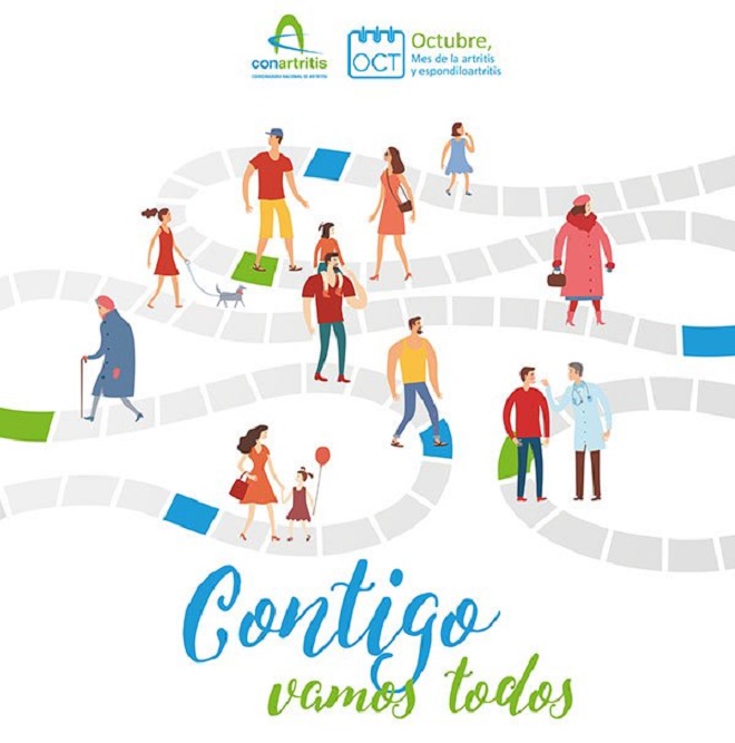 El Día Nacional de la Artritis sirve de punto de partida de la XIII Campaña ‘Octubre, mes de la artritis y la espondiloartritis’ de ConArtritis, que en la presente edición llevará por lema ‘Contigo vamos todos’ para, por un lado, recordar la necesidad que presentan los pacientes de recibir un tratamiento multidisciplinar y, por otro, destacar la labor que realizan todos los profesionales y las organizaciones que trabajan para mejorar su calidad de vida